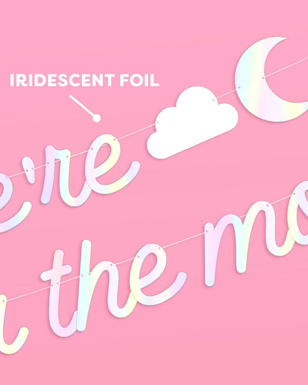 We're over the moon! Shower the baby mamma in your life with this super cute banner.